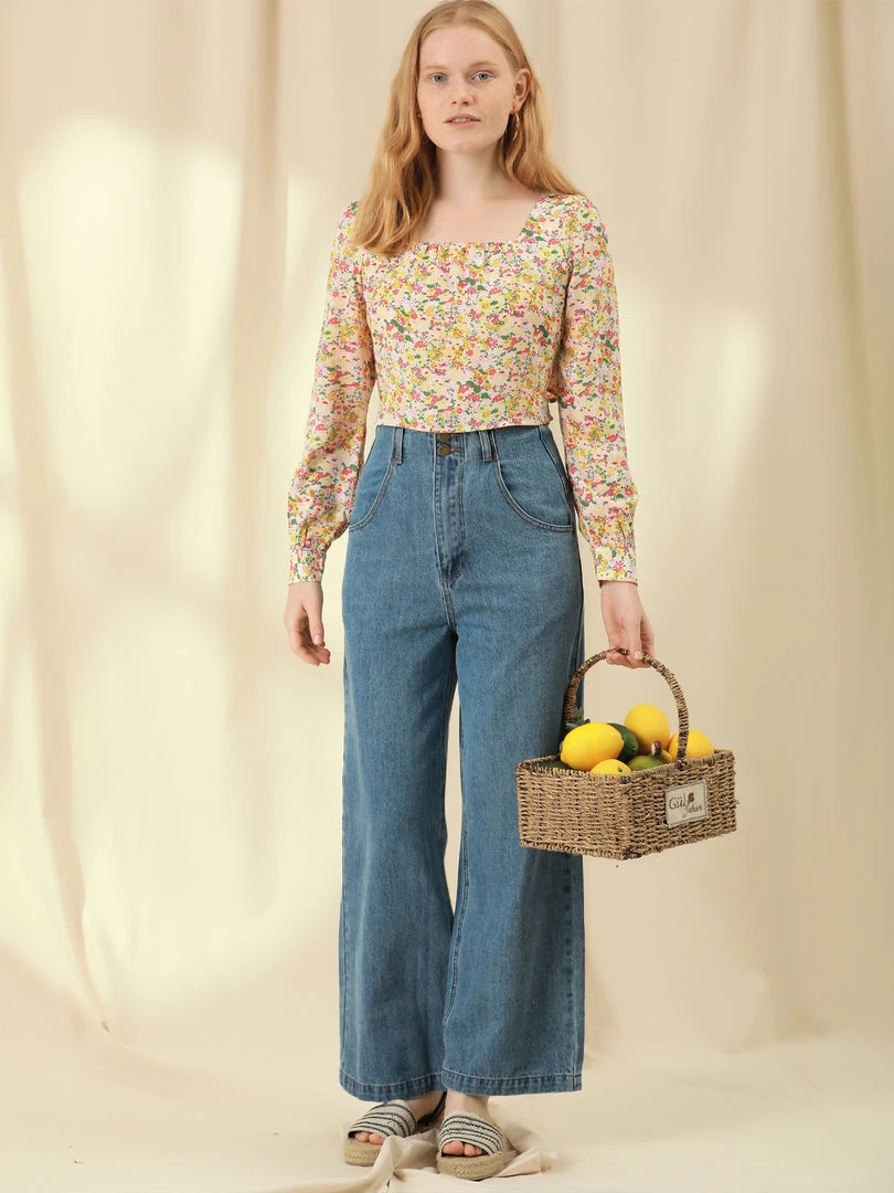 - With cute cropped top design and peasant vibe, layered with jeans and bag for an everyday look!
