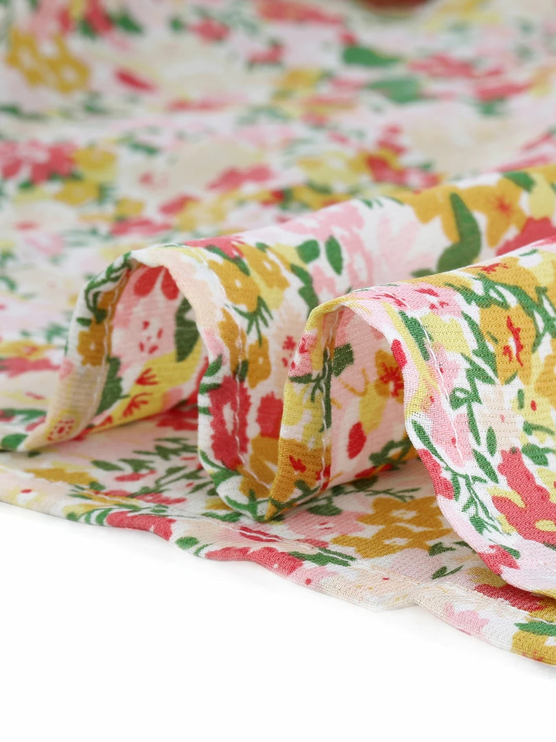 - Fall in love with this crop tops cut from a charming floral pattern, square neck and bowtie.