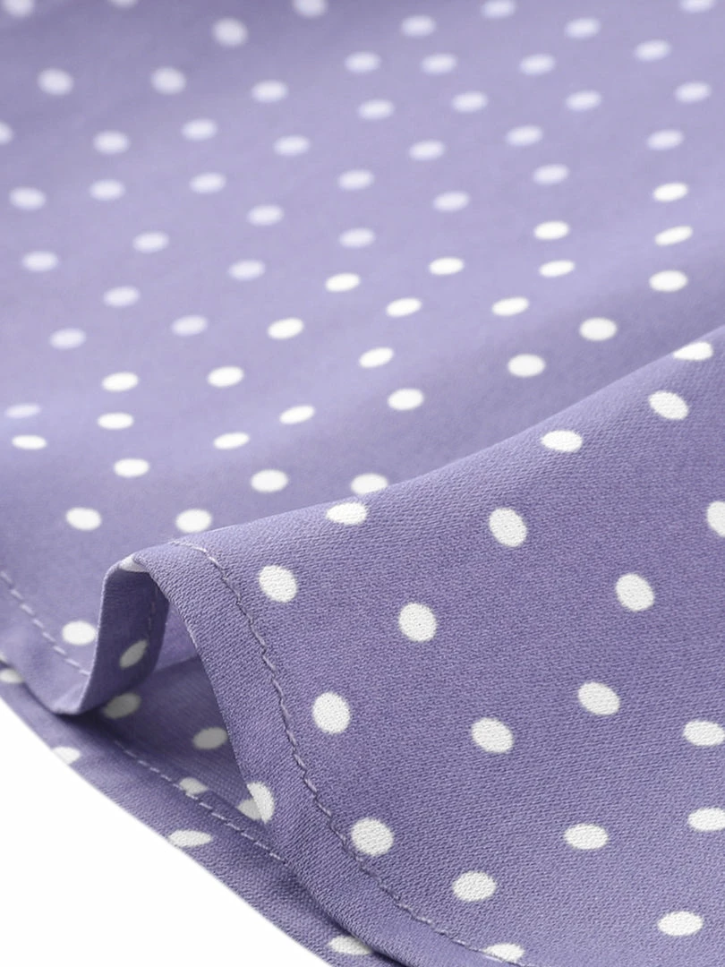 Allegra K Women’s Tie V Neck Button Up Polka Dots Top Blouse