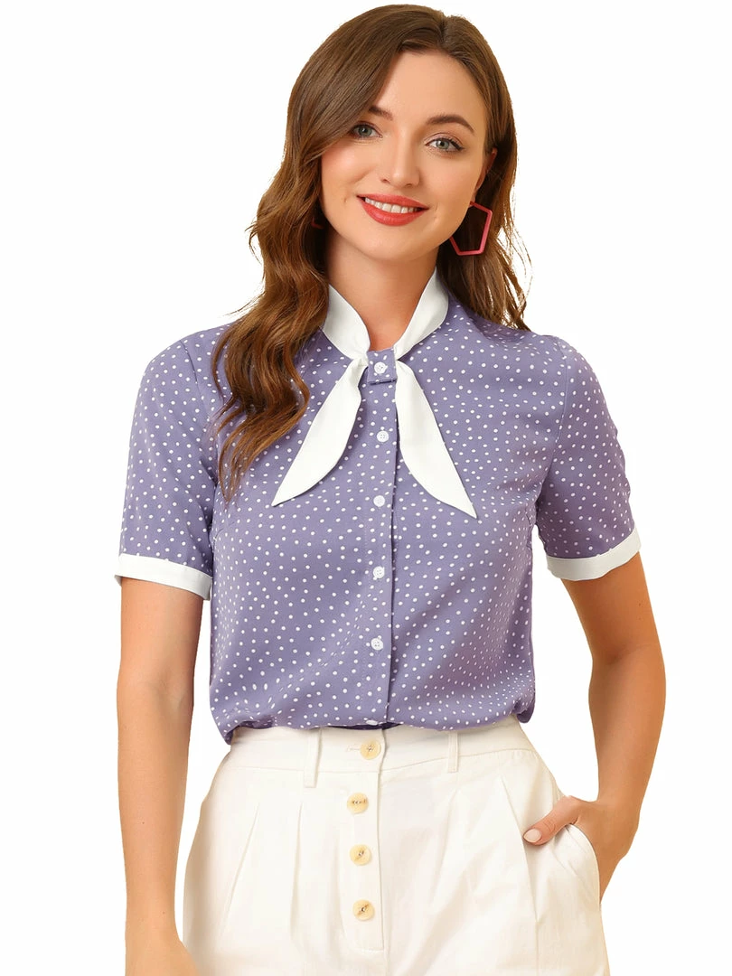 - This polka dots and contrast tie-neck top gives you a more casual feeling.
