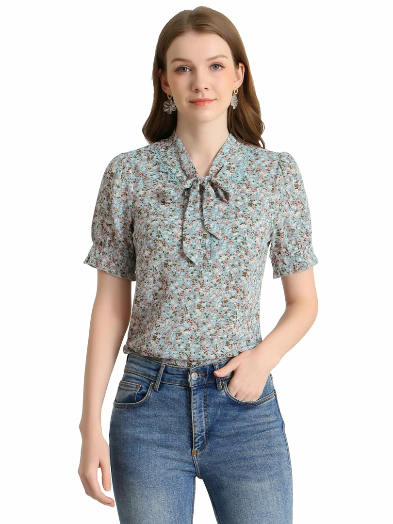 SKU: allegra-k-7499852153075 Categories: Clothing, Tops & Blouses, Women Tags: Blouses, Blue, Casual, Floral, Tie Neck, Tops & Blouses, Women, Women's Clothing