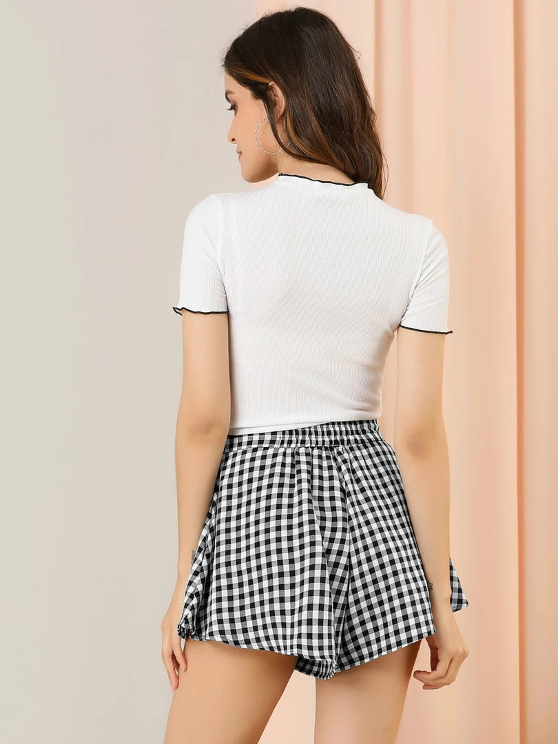 Allegra K Women’s Tie Waist Casual Wide Leg Loose Fit Summer Plaid Mini Shorts