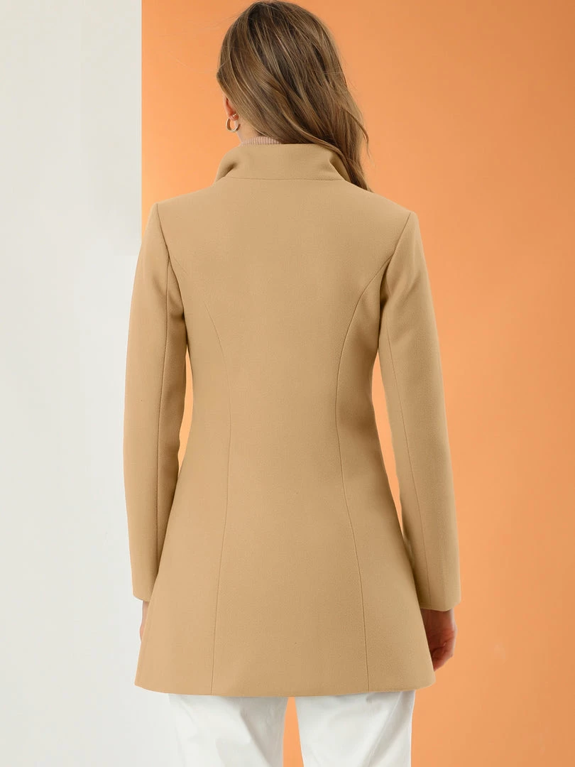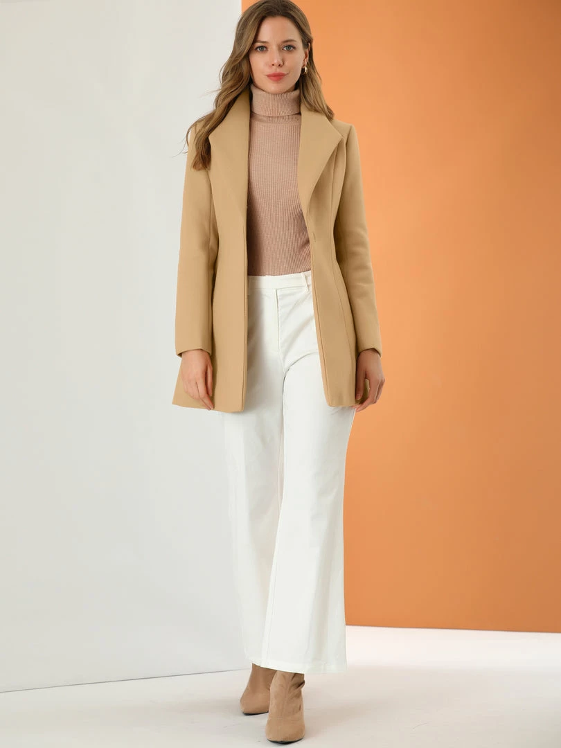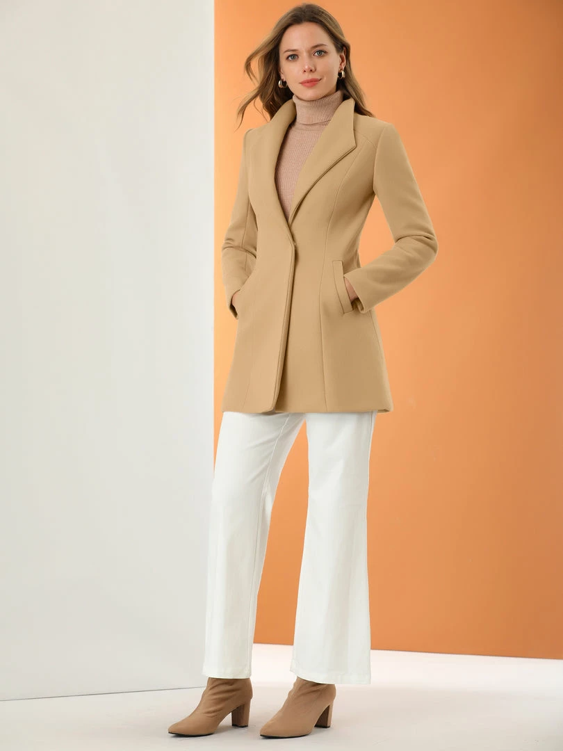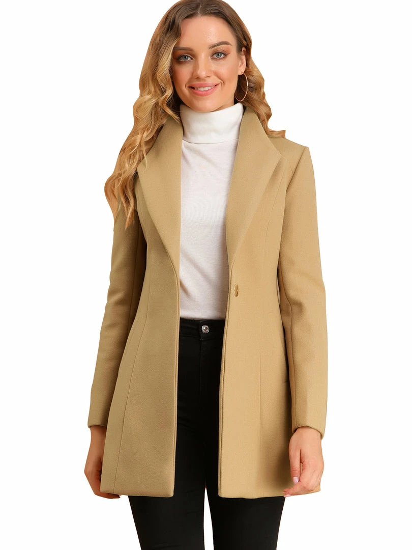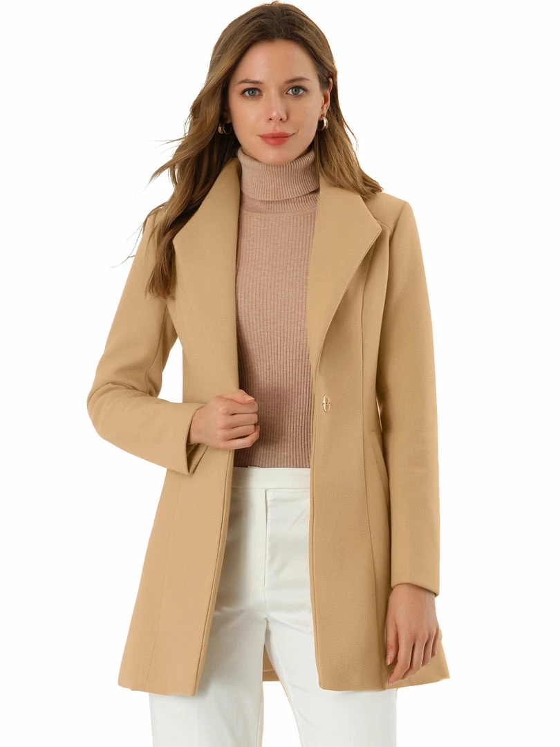 Allegra K Women’s Turn Down Collar Buttoned Business Casual Mid-Long Winter Coat