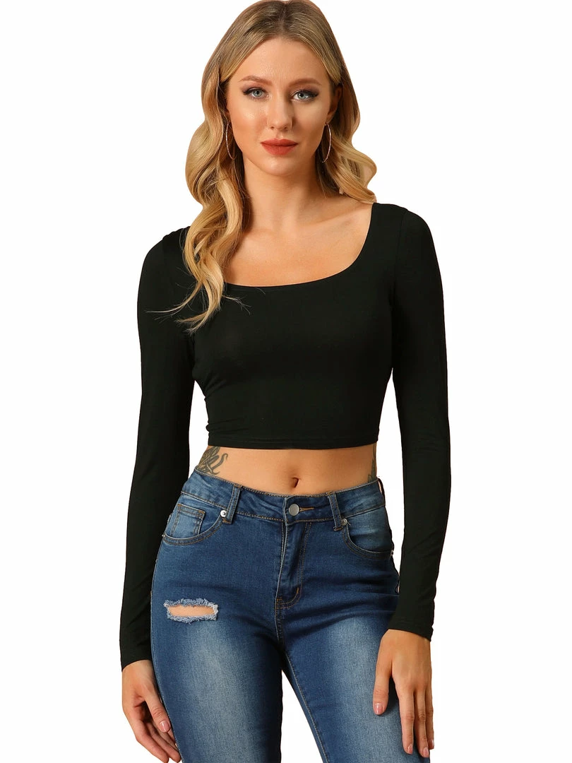 - Allegra K is exclusive! Let Allegra K lead the u-neck crop open back top, bringing you a simple and unique dress!