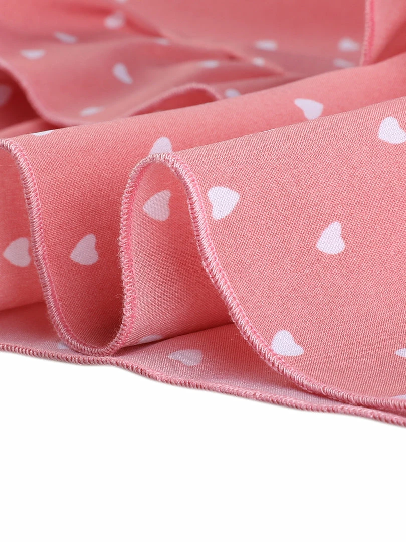 - V Neck, Heart Print, Smocked High Waist, Smocked Cuff, Ruffle Hem, Long Sleeve, Invisible Side Zipper, Mini Length.