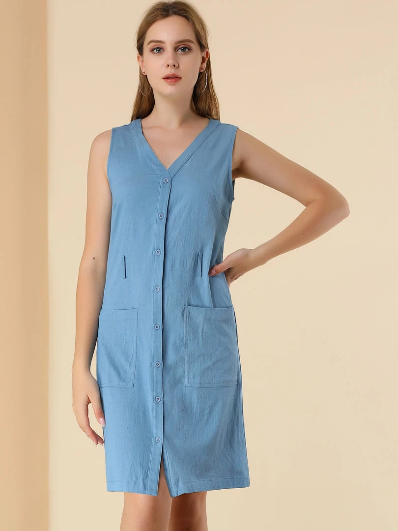 Be the first to review “Allegra K Women’s V Neck Sleeveless Button Up Split Above The Knee Dress With Belt” Cancel reply