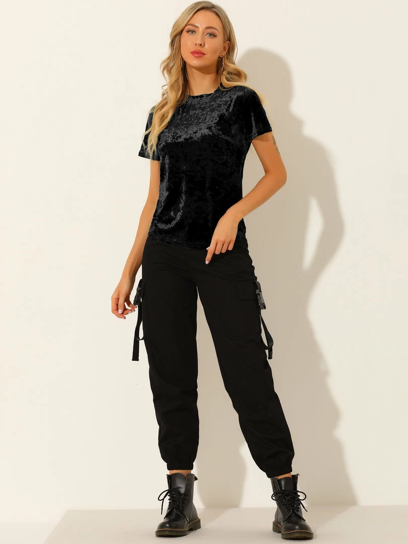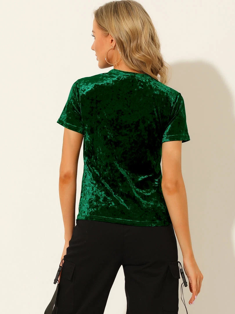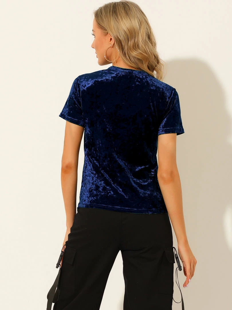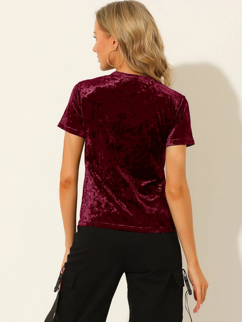 Allegra K Women’s Velvet Top Crew Neck Short Sleeve Casual T-Shirt