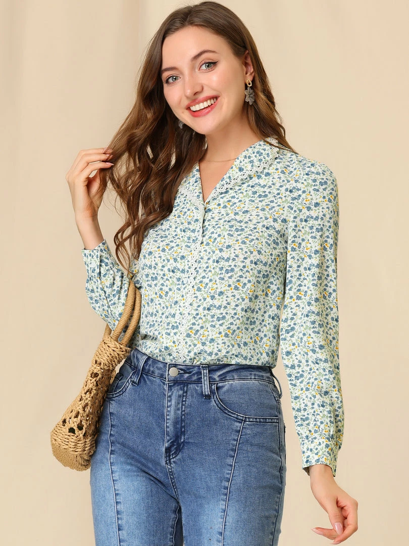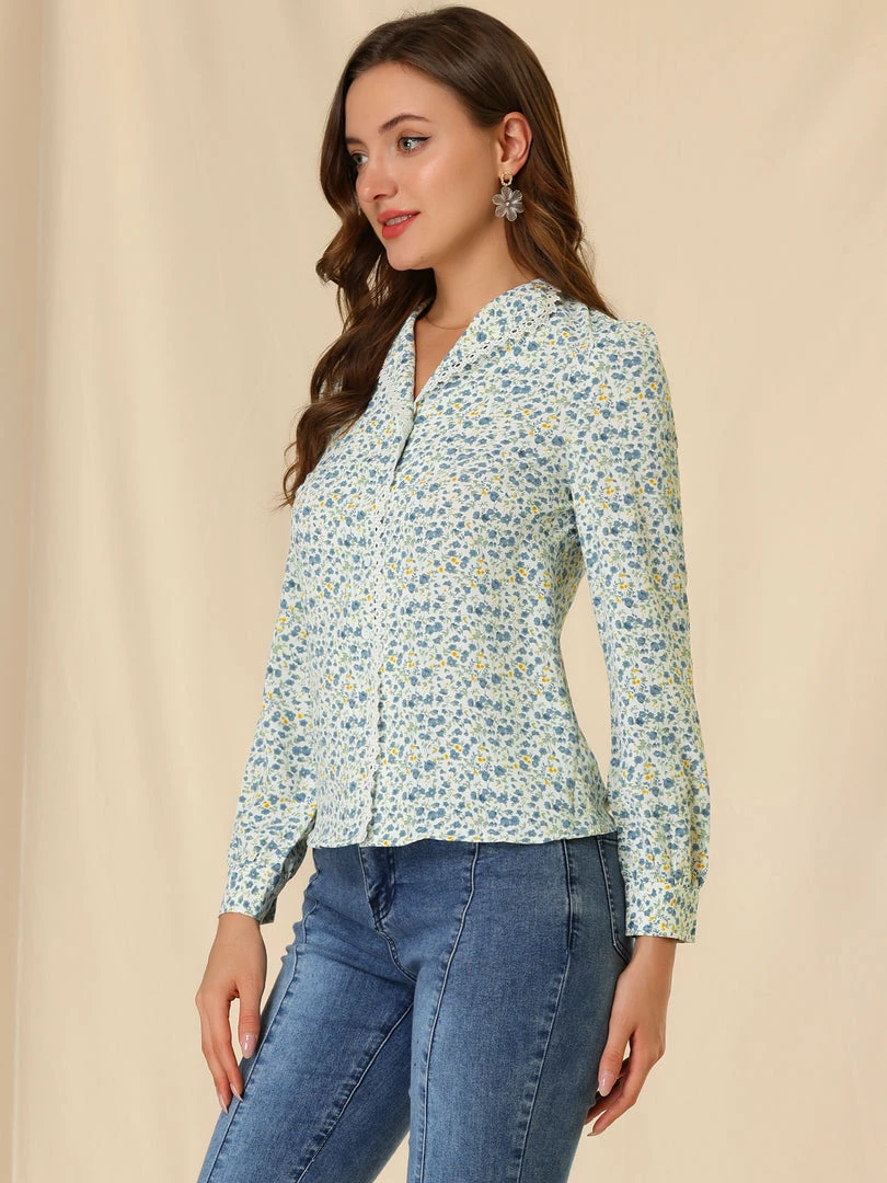 Allegra K Women’s Vintage Floral Blouse Peter Pan Collar Shirt