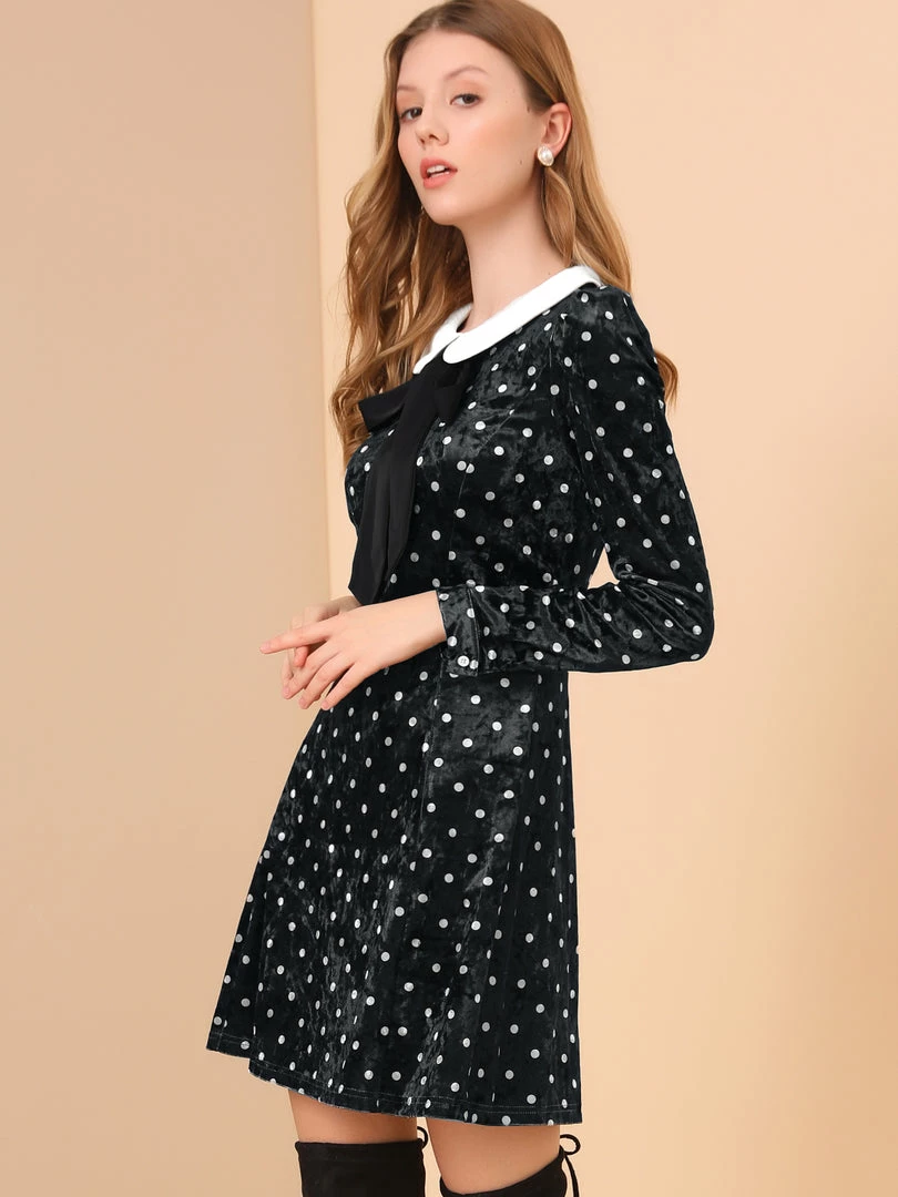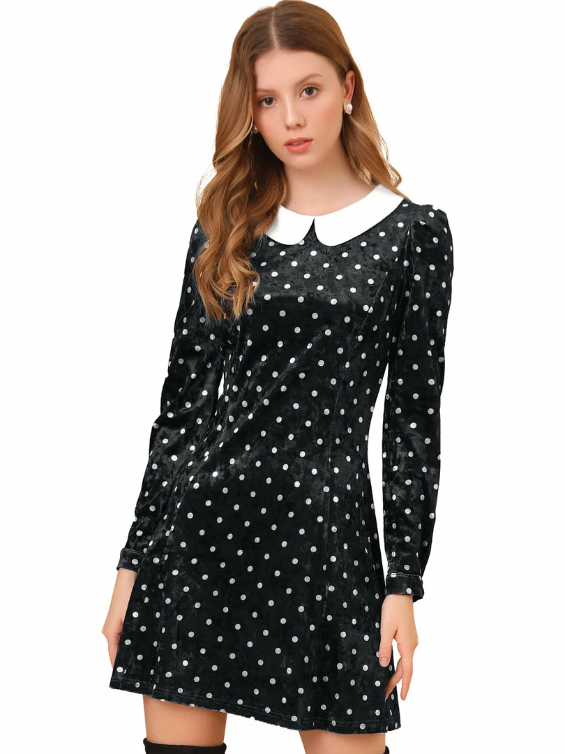 Allegra K Women’s Vintage Polka Dots A-line Peter Pan Collar Cute Velvet Dress