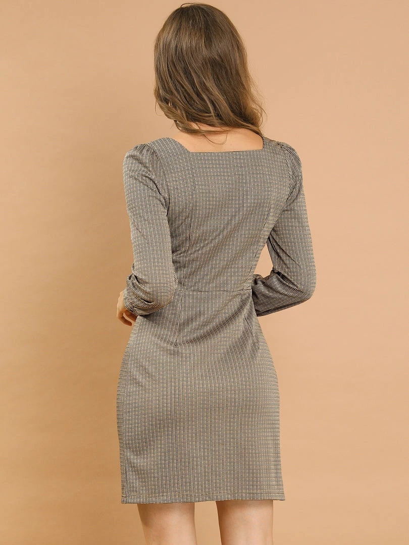 • Houndstooth plaid  printed amplify the retro-chic style of this dress.