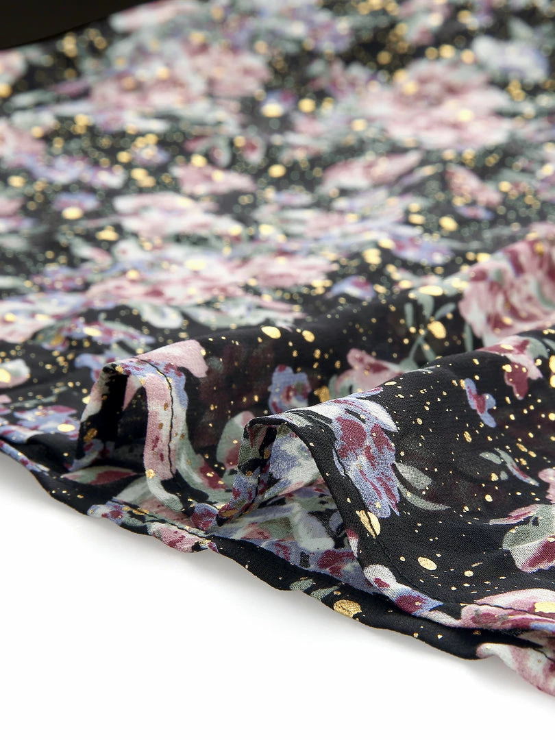 Allegra K Women’s Vintage Tie Neck Long Sleeves Casual Bronzing Floral Dress