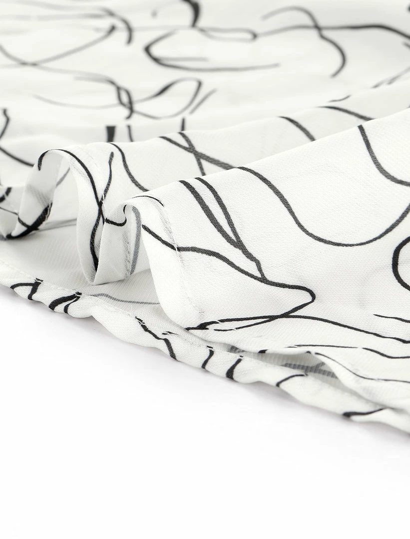 • Abstract print are perennially in season with this swing dress framed with sleeveless design and finished with a tie neck.