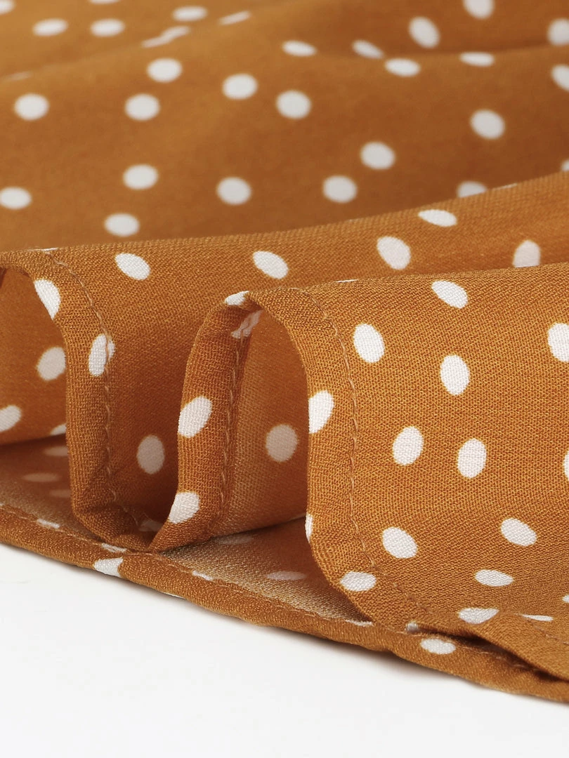 - Polka Dot, V-Neck, Long Sleeve, Invisible Zipper, Pleated, Elastic Back
