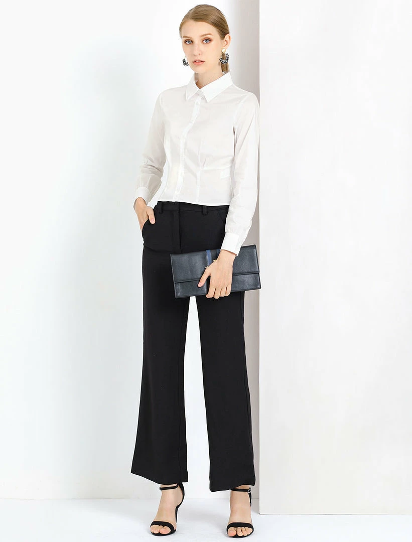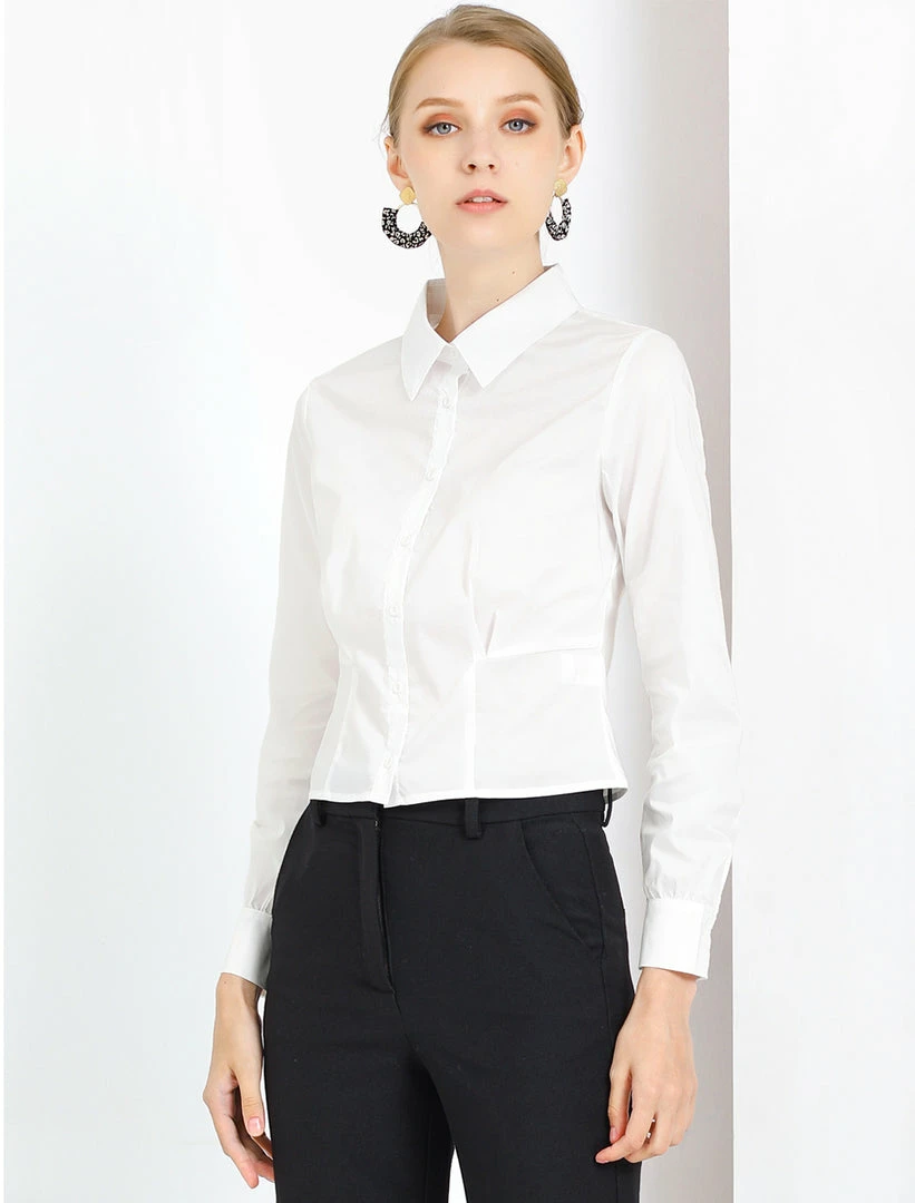 Allegra K Women’s Work Office Cropped Button Down Vintage Shirt
