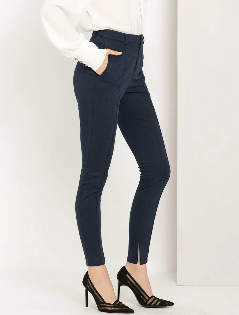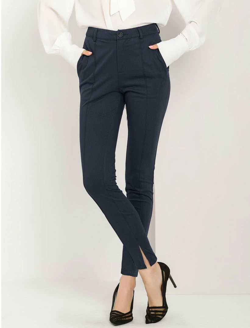 Allegra K Women’s Work Solid Pintuck Straight High Waist Slit Hem Pants