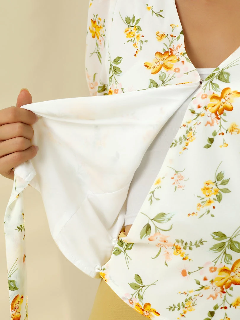 - This ruffle floral print blouse will brighten your wardrobe.