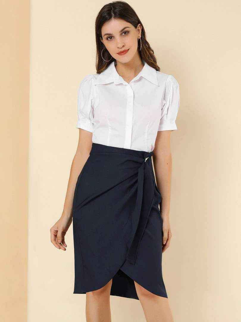 • Wrap skirt with tie front add feminine and fashion feel to your office look.