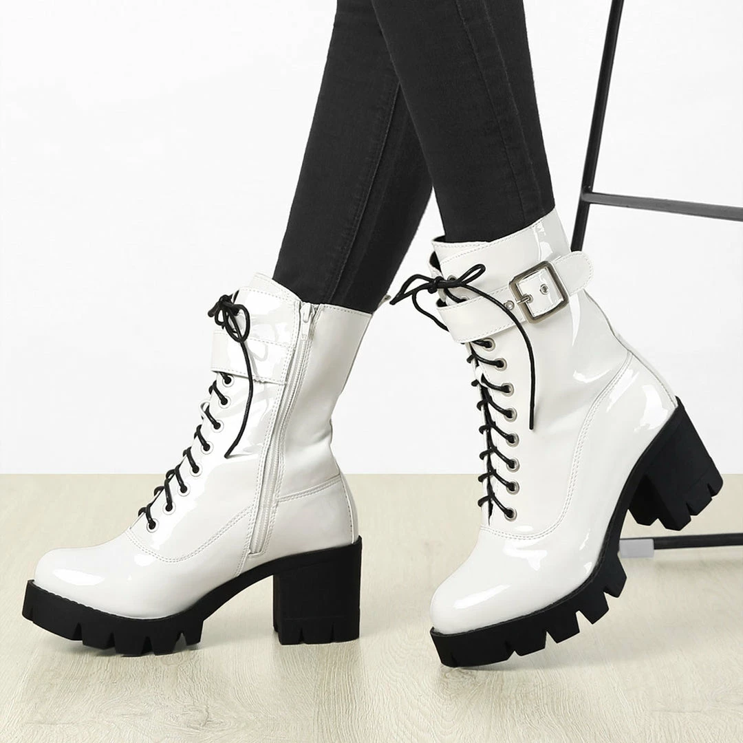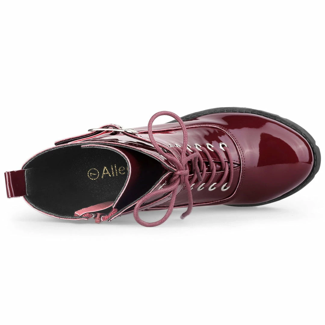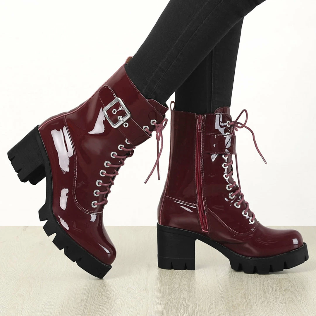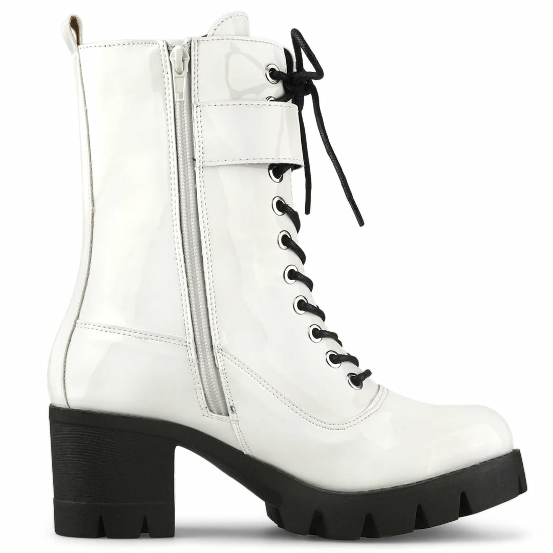 These super stylish platform combat boots with chunky heel, if you are in a hurry, slip these on easily with the side zip fastening. Finished with a patent leather upper, these will keep you one step ahead of the fashion pack. The TPR Sole Comfort range has precision padding for exceptional fit and every day comfort.