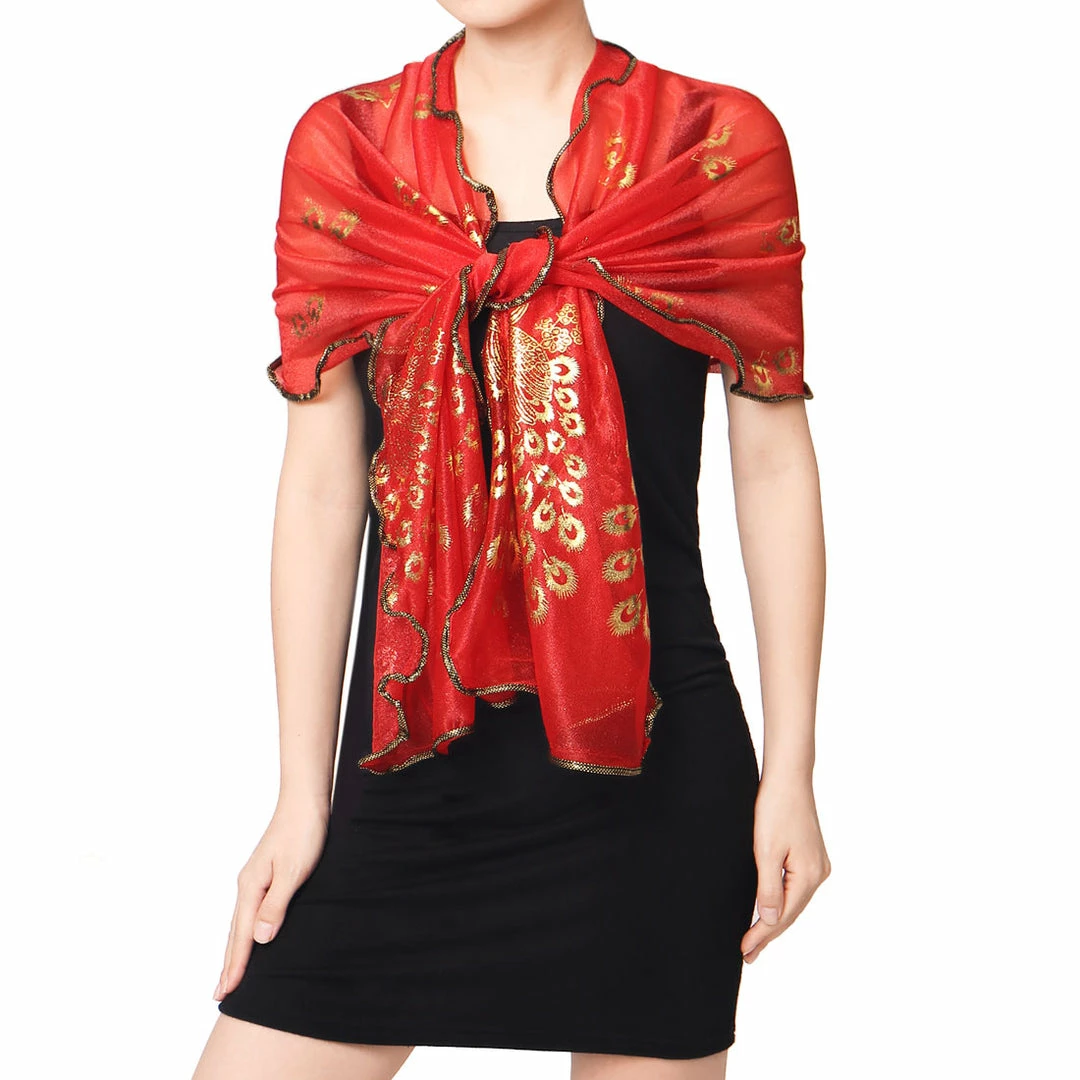 This mesh scarf featuring beautiful peafowl prints, offers fashionable look for women with any of your outfits.