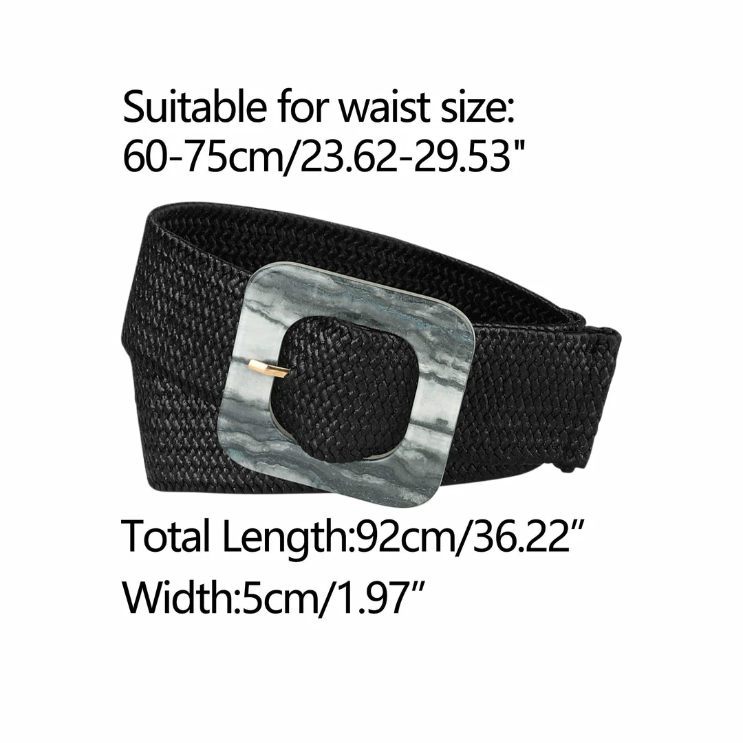 Allegra K Womens Stretchy Wide Waist Belts Braided Belts For Dress Square Buckle Adjustable Accessories